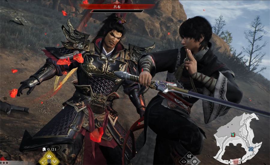 5、将城墙前方的士兵干掉后,会有一个BOSS血条的官兵队长从城门里出现,将他干掉完成序章的战斗,与关羽在篝火旁交谈,进入第一章。