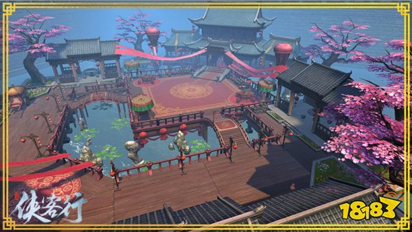 在原著场景IP的还原上,也精致的进行3D建模。在原著中备受玩家喜爱的镇江,得到了完美的重建,古色古香。利用灯笼、木楼、水塘等要素,搭建出一个古老的江南重地。