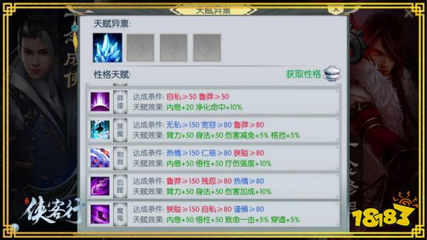 江湖奇遇玩法致力于还原江湖的随机性。玩家可以在酒馆打听“小道消息”,依存言语中的蛛丝马迹,找到相关NPC完成奇遇任务。性格玩法则致力于还原江湖的对立性,玩家通过完成江湖奇遇任务获取性格点数,解锁天赋加成技能。