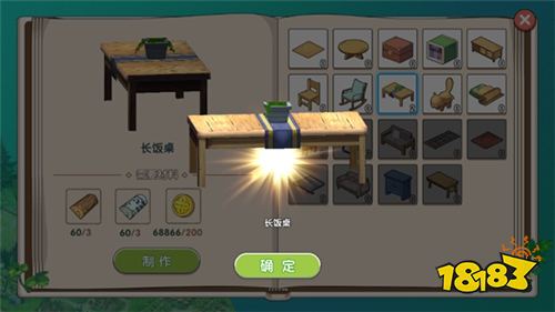 和传统装扮类手游不太一样的是:《小森生活》游戏中的每一件自宅家具都需要玩家亲手制作并不能直接购买获取。玩家根据自身的家具制作等级,可以在木匠叔叔那里学习制作各种家具,制作等级越高可以解锁制作更高级精美的家具;玩家根据自己的喜好进行家具制作学习,学成之后可以在制作界面查看该家具所需要的材料并进行收集;游戏中的材料都是需要玩家自己采集或者置换另外还需要一定的金币,可以说从选材到制作都是玩家自己独立完成。