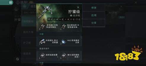导弹制导计算机、自适应全能立场、中型护盾回充增量、中型加力燃烧器,战斗改装件:火箭燃料缓,冲隔离装置、液压仓推进器;