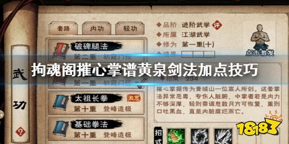 烟雨江湖拘魂阁摧心掌谱怎么加点?摧心掌谱和黄泉剑法都是拘魂阁天级的武功,据传是青城山一位高人所创,以及为黄泉的杀手所开创。下面小编就为玩家带来烟雨江湖拘魂阁摧心掌谱黄泉剑法加点技巧,一起来看看吧。