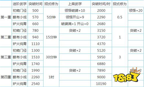 烟雨江湖作为一款江湖武侠游戏,武学繁多,那各级武学升级需要多少阅历值、突破时间,升级能增加多少修为?今天小编就为大家带来烟雨江湖武学升级经验表,感兴趣的玩家一起来看看吧!