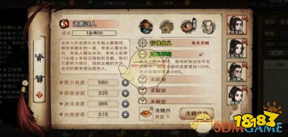 4、剩下的经脉基础12条脉,选择几条简单的身法脉点通之后,然后进行洗点,身法点到225即可,剩下点数点内息即可,臂力根骨都不需要,如果想要提高臂力,经脉开脉即可,不需要属性点增加臂力。