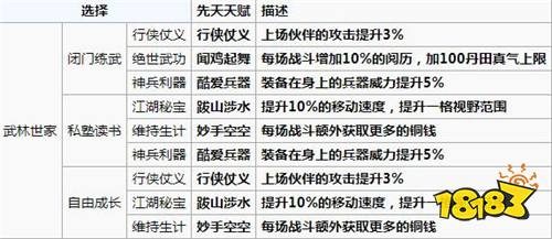 主角开局的先天天赋将会有一次平衡调整,侠士们在创建新角色时,也会在每次做出选择后,看到自己的选择所带来的影响后果。