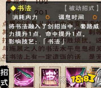 书法的用处:将书法融入了剑招当中,套路威力提升1点,命中提升1点。