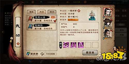 四技能泉鸣芙蓉,,有45%+X几率减少落英凌烟回合的冷却时间,几率属性内功,这里面没有实装,所以不多做评价。