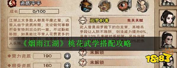 《烟雨江湖》游戏中桃花武学怎么搭配?很多小伙伴在游戏中还搞不清楚桃花武学的搭配方法,那么接下来小编为大家带来《烟雨江湖》桃花武学搭配攻略,一起来看看吧。