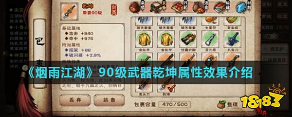 以上就是小编整理的关于《烟雨江湖》90级武器乾坤属性效果介绍的全部内容,更多游戏攻略请持续关注18183手游网!