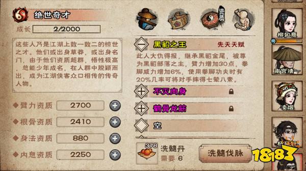 拓跋浚黑貂之王天赋效果:此人大仇得报,继承黑貂金尾,被尊为黑貂部落之主,臂力增加30点,拳脚威力增加6%,使用拳脚功夫时有20%几率可将对手摔得七辇八素。