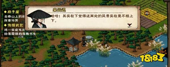 1、首先在凤鸣镇坐标为10,13可以看到宋云迟,选择打听美景,会有两个选项,金龙湖和凤鸣镇,任意填写一个即可。
