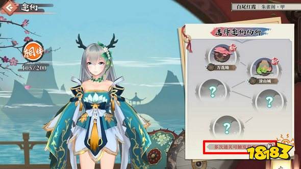 比如说青林第5次出游万花坳遇到的还是翠玉灵,但是翠玉灵的两个选项我都选过了,所以下图小花瓣就不会亮起第4片。