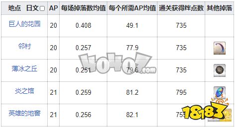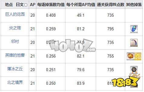 掉落关卡AP效率排序
