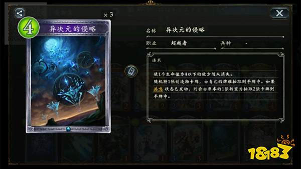 效果类似与异次元的侵略,比侵略好的是可以在卡手时作为5费的过渡手段进化后解场加站场并补充手牌创造物资源。不如侵略的是后期费用过高,且会占用一个格子,能否熟练运用哈克拉比也是能否用好造物超越者的关键。