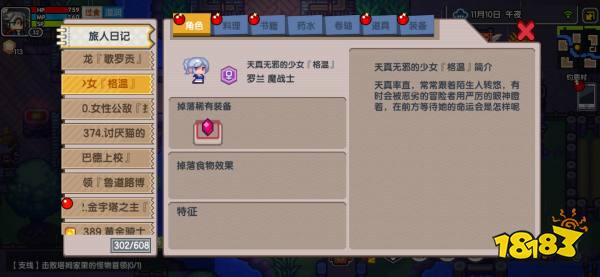 角色类:角色类页面可以查看到角色的职业种族,掉落物品,以及角色简介,以367号天真无邪的少女格温为例,从图鉴中可知她会掉落黑星物品“善人的秘宝”,如果你想获取这个物品,那么便可以通过击杀她的方式来得到,要注意由于是黑星物品,掉落的概率会非常低哦,有可能杀掉几十次甚至几百次才能够得到。