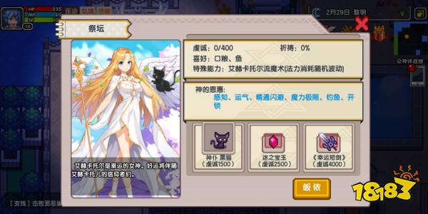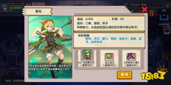 《伊洛纳elona》中的信仰和神仆系统是一个非常重要的玩法,选择信仰可以从众神休战地中的祭坛中选择,今天为大家带来8大神仆(大地神、幸运神、风神、机械神、元素神、收货神和治愈神)的属性解析解析以及信仰选择的思路;