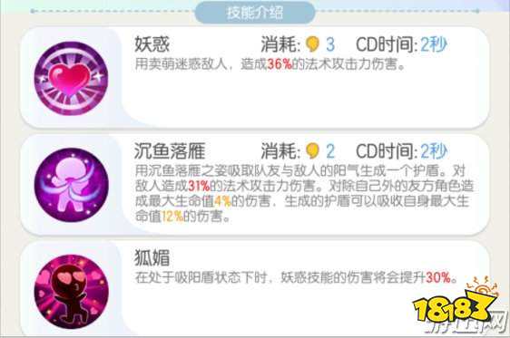 一招:妖惑,消耗3个元气豆,CD时间2秒。