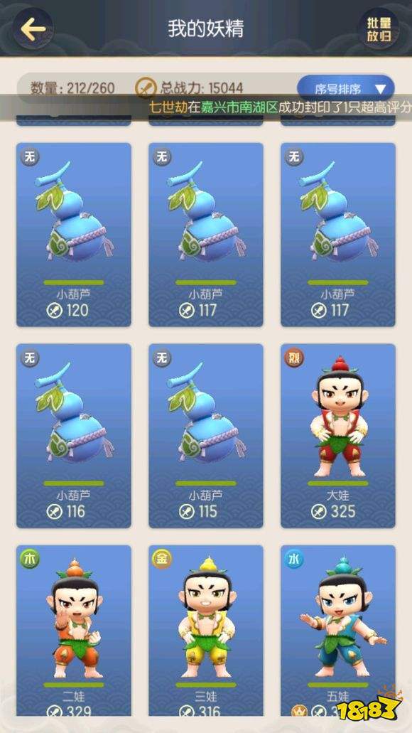 一起来捉妖里有不少妖灵的图鉴是没有开的,因为有不少妖灵游戏都没有放出来,比如说今天要说的葫芦娃兄弟,一共7个葫芦娃,让小编挨个给大家介绍一遍,在说说大概什么时候上线!
