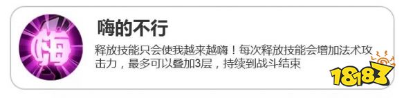 被动技能嗨的不行,释放技能会增加法术攻击力到战斗结束,可以叠加3层,全员恶人会在战斗中越来越强。御灵师可以选择快速释放1技能叠层数,再用2技能爆发输出,这波操作让人真是嗨到不行啊!