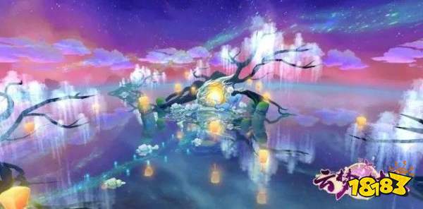 快看,人界苍劲的树木摇身一变!银色藤蔓上挂着一个个黄色小灯笼,妖娆神秘;水面石台透出绿色光芒,后方的神鹿似乎在守护着什么……此乃天机!天机!