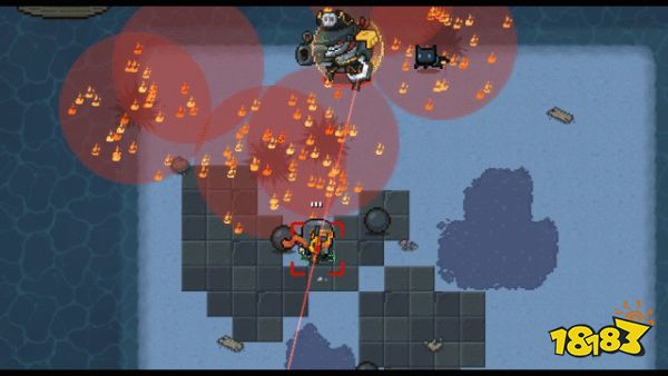 不远的海上,还有一艘海岛补给船,不时会向战场投掷炮弹。炮弹落地后一旦受到攻击,将启动爆炸倒计时。此爆炸将对战斗双方造成无差别伤害。