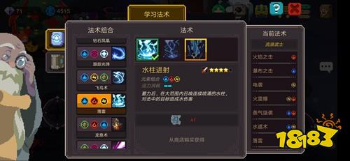 第二个大招推荐是“水柱进射”使用原因是对boos(史莱姆王、外星双子)伤害非常高,巨高!但是在这个关卡中没什么用,因为这里面的蓝色小怪(水属性怪物)免疫水属性的伤害!