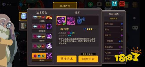 现在推荐大招(三属性技能):第一个毒鸟术;这是我最推荐的大招,因为这里面含有水、土、暗三种属性;主要推荐作用有五个,一,在地下水道这里需要用到的水、土护盾这个大招中有;二,这个大招有对这个关卡非常大的伤害,不仅仅是这个关卡所以关卡都是!其中原因就是这个大招有“毒”伤,而且毒的伤害很高,每秒三十的伤害,持续大概十秒差不多;三,就是这个大招会随着你的移动它也会移动偏向于你,后面的毒侯鸟就不会,它只是原地转而已(你释放的地方原地转)。四,这个是讲它的水、土技能的“一字石柱”这个对常见的第一个boos史莱姆王伤害很高,只要水、土属性升两级或者一级,两级两次(出现)就可以秒杀史莱姆王(我的感觉是)一级就要三次或者四次了;五,“断筋之击”这个感觉好玩而已,可以穿墙,约过比较薄的墙,可以直接把关住你的挑战关卡,跳到另一个房间,使用断筋之击的时候附近不能有怪,不然就跳到怪那了!还有(加一个)这个技能对所有怪物都有伤害!
