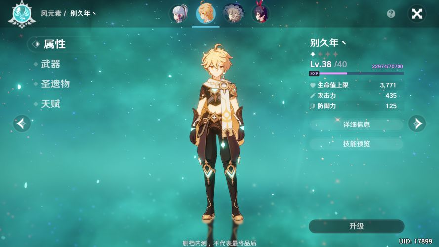 装备的话只要有个三星武器就差不多了,前期先把多个狗粮素材整到20级,然后消耗三星狗粮进阶到4星,那么这就是我们长期使用的过渡装备了,利用20级的狗粮把这把过渡武器升到40级,那么你的主角战力就非常的爆炸了。