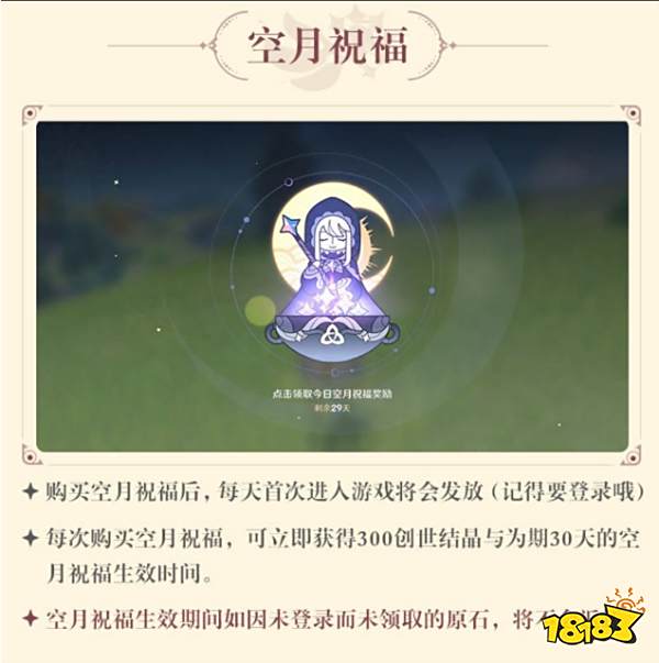 原神的月卡奖励为购入时的300原石外加持续30天每天90原石,因此合计收获为3000原石,售价30元。3000原石并不足够玩家进行20抽,因此除了月卡赠送的原石外,玩家们还是需要每天完成日常任务,才能够在每日连续登陆的情况下每个月获取到接近30抽的原石。