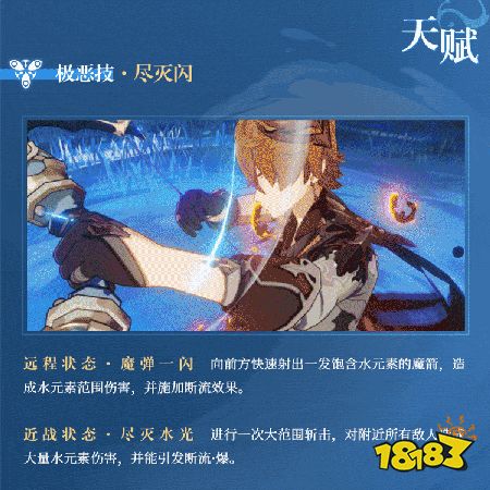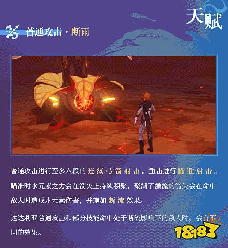 在攻击的时候,会给敌人附加“断流”,造成水属性AOE伤害。