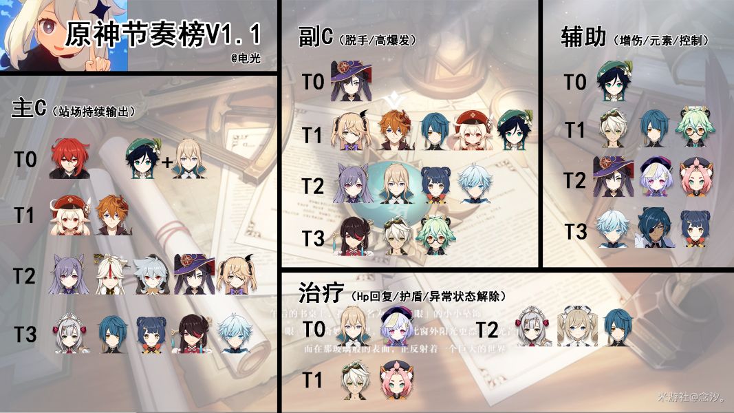 原神1.1版本全角色节奏排行榜已经出炉,关于各个角色的强度相信有不少旅行者大人十分关注,下面小编就为大家介绍原神1.1角色强度梯队排名,快来看看吧。