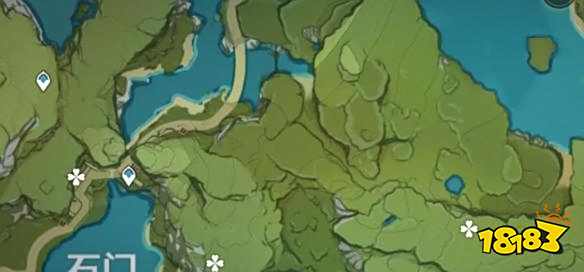 同时这里还有两个圣遗物狗粮产出点,图中标记为“四叶草”。蒲公英;兽肉、辣椒、莲蓬等食材都有丰富的产出。