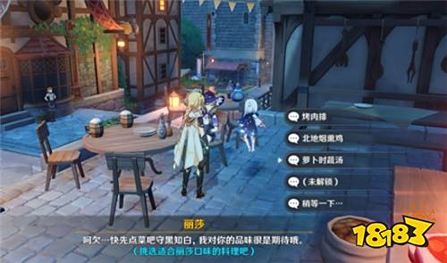 2、挑选适合丽莎口味的料理:萝卜时蔬汤(PS:和店员聊天解锁选项)。