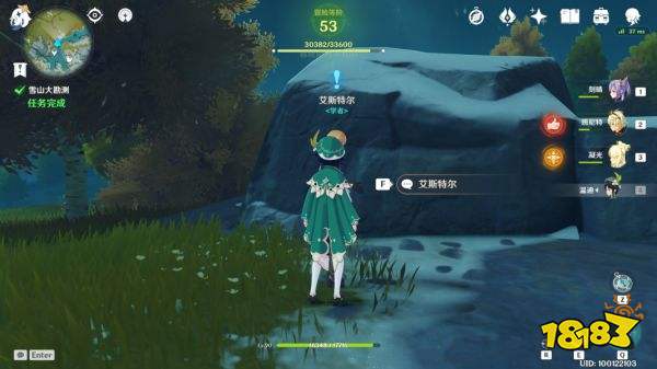 在雪山左方的传送点附近,与艾斯特尔对话会触发任务“雪山大勘查”,让旅行者帮忙寻找四个遗失的信标。