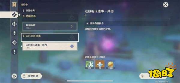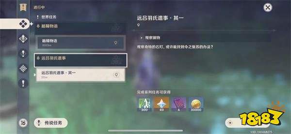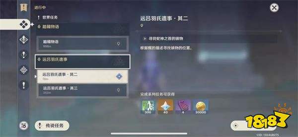 序章:八酝岛深为「祟神」所困,仍然留在岛上的矿工梶先生似乎正在寻找抑制其增生的方法。先在下图位置触发任务,获得20原石。之后进入远吕羽氏遗事·其一任务。