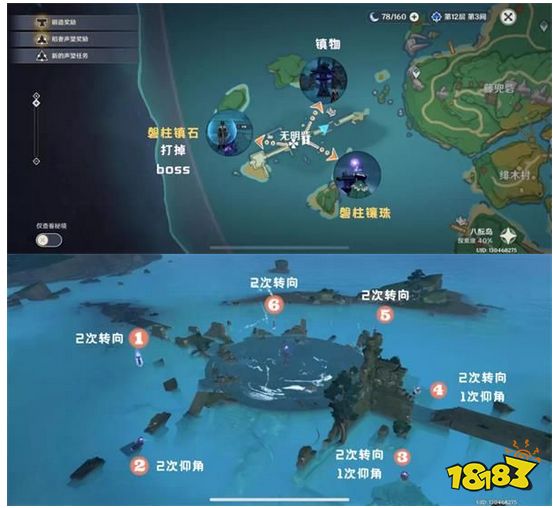 跟随元素视野里的提示前进,【镇石】在副本右下方,红色箭头指示那里进去,需要在上面旁边拿雷种子进入下方雷屏障开启机关,干掉几只机关怪【镇石】就出来了。完成这个任务后,八酝岛区域雷雨停止,天气放晴。