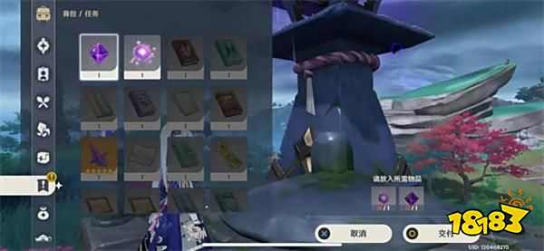 在【镇物】,放入【磐柱镇石】和【磐柱镶珠】,此时八酝岛北部雷雨停止,天气放晴。随后和npc梶对话,解锁后续的其二和其三任务。