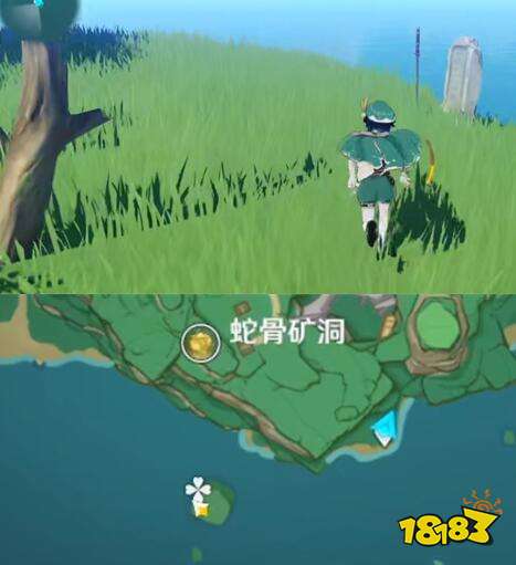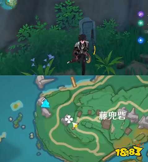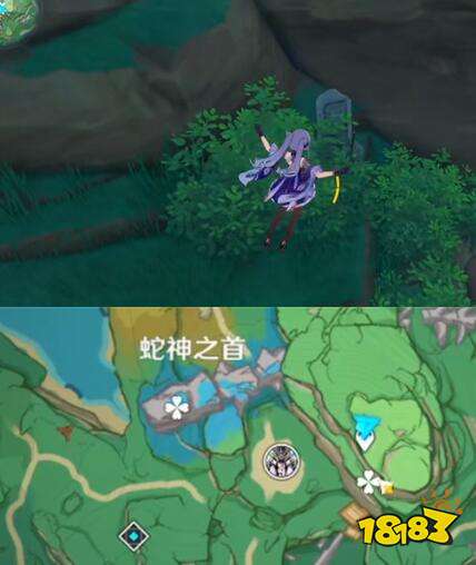 八酝岛-蛇神之首传送点我们需要往南跳下去然后看到的半山腰处