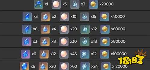 20级:涤净青金碎屑*1+珊瑚珍珠*3+浮游干核*3+摩拉20000