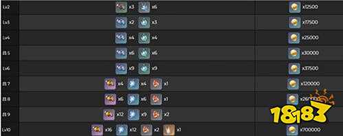 10级:浮世的哲学*16+光谱核*6+女士掉落材料*2+智识之冕*1