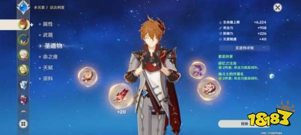 圣遗物 :毛 花 攻击沙(精通沙)水伤杯,暴击爆伤攻击头(攻击头在使用五星武器副词条是爆击爆伤的情况下没什么区别)
