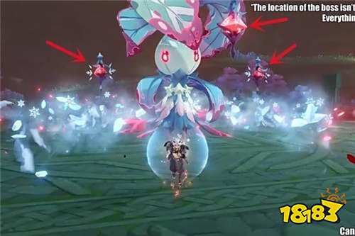 此外,巨型骗骗花还能进入“超频攻击”状态,估计是在自身残血的时候,吃下一个类似于灯笼一样的东西就能变身,因为巨型骗骗花身上一共有三个这样的灯笼状物体,因此可以推断它能先后三次进入“超频攻击”状态,在该状态下巨型骗骗花的攻击速度和攻击伤害都会大大增加,因此建议玩家不要硬刚,该避则避,不过他的攻击方式与普通骗骗花没什么大的区别,玩家可以使用火元素攻击打断。