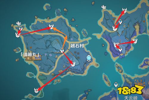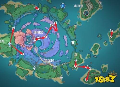 多数位于水面之上,携带霄宫等远程角色可较大提升刷取效率。