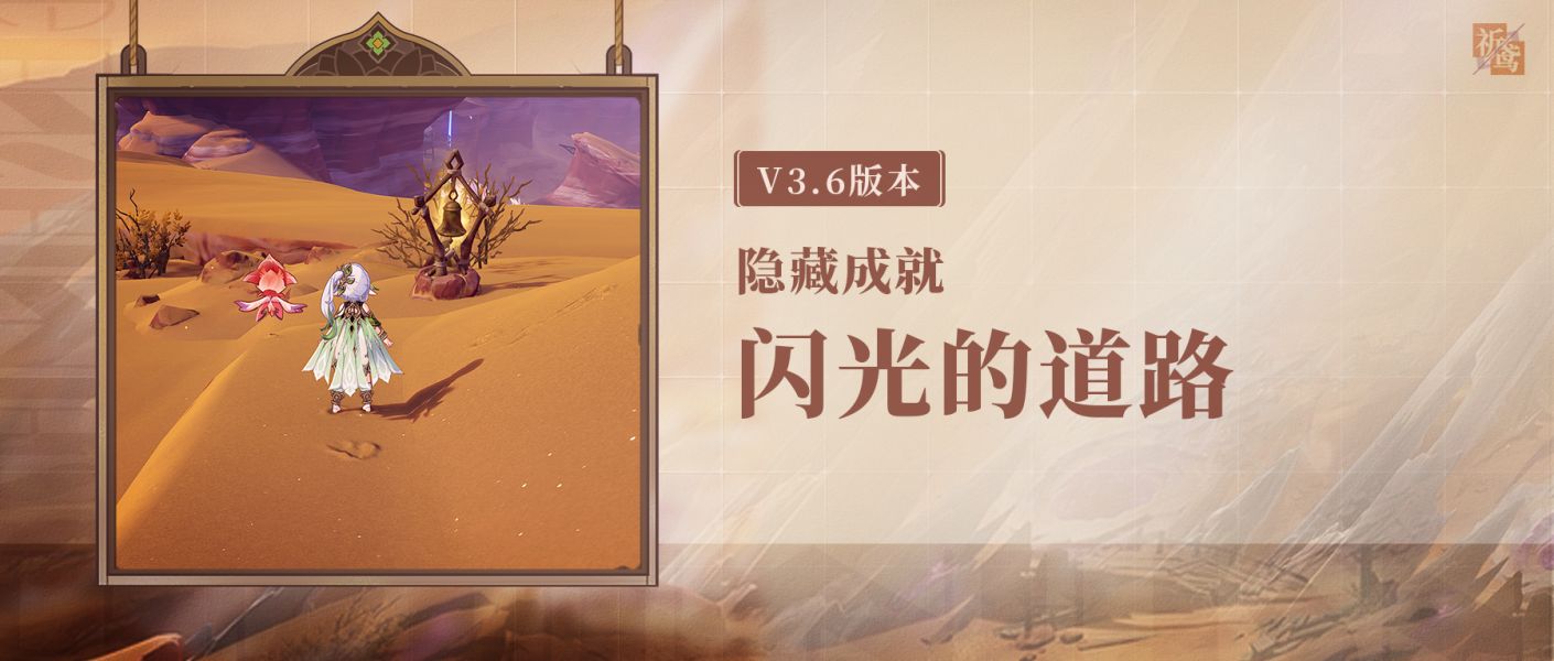 原神中闪光的道路隐藏成就获得方法是在苍漠囿土,寻找中的9处灵宝铎,并完成其挑战即可。首先与灵宝铎交互,开启挑战后,在规定时间内,接触全部的目标即可,可以获得7个普通,2个奇馈宝箱和一个成就。