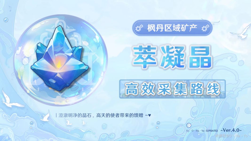 原神萃凝晶快速采集完一共是107个,分别在枫丹廷区的陆地、枫丹廷区海底的塔拉塔海谷、塞洛海原、厄里那斯、海沫村、海露港和欧庇克莱。要注意的是在枫丹水下采矿,需要使用螃蟹技能才能采集