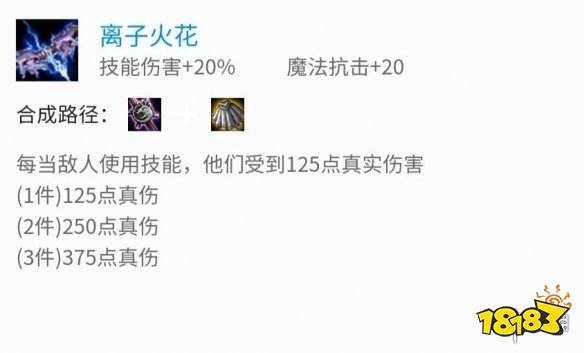 由于火花体系是真正意义上的装备驱动阵容,所以我们要重点了解一下离子火花这件装备。
