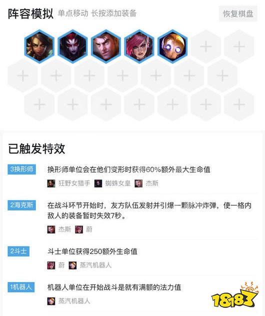 中期7人口阵容基本成型,此时的阵容强度已经非常高了,机器人与挖掘机都是非常容易3星的点,加强后的3星机器人秒人非常快乐。