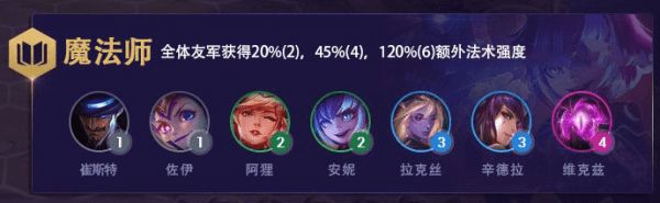 羁绊:所有的友军获得20%(2),45%(4)和120%(6)的额外法术强度
