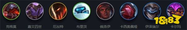 克格莫、嘉文四世、厄加特、布里茨、俄洛伊、卡西奥佩娅、伊泽瑞尔、卡尔玛