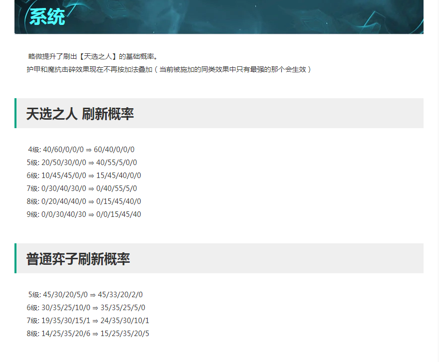 主要的改动,就是降低了在7级时,4费卡天选出现的概率,从30%降低到了5%。